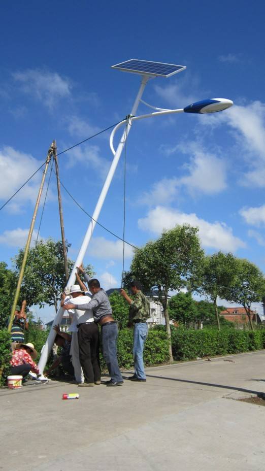河北省承德雙灤區(qū)新農(nóng)村建設(shè),6米40瓦LED太陽能路燈安裝現(xiàn)場,本次項(xiàng)目共中標(biāo)386套太陽能路燈,其中6米25瓦180套,4米40瓦206套,路燈安裝完畢后街道整體亮度能達(dá)到5Lux,為居民夜間出行提供了便利條件。
