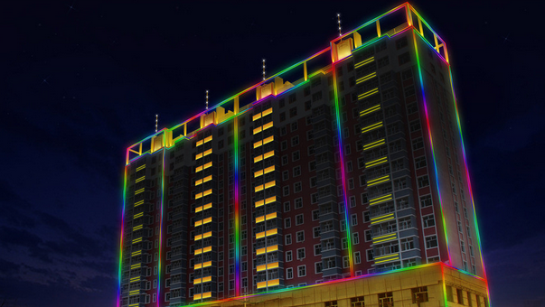 樓體亮化用到的數(shù)碼管數(shù)量最多,在安裝時也是相當(dāng)復(fù)雜,因為涉及到很多高層樓體,在安裝時通常需要高空作業(yè)人員通過下吊板來完成固定環(huán)節(jié)。說到固定這一點,需要注意的問題很關(guān)鍵,因為90%以上的樓房都有5公分左右的保溫層,安裝led數(shù)碼管的脹栓一般都在3公分左右,如果不能將數(shù)碼管與墻壁完全固定結(jié)實,那么時間長了很多數(shù)碼管都會逐漸脫落下來,樓體上耷拉著數(shù)碼管的現(xiàn)象隨處可見,重新加固已脫落的數(shù)碼管和安裝的的成本是一樣的。