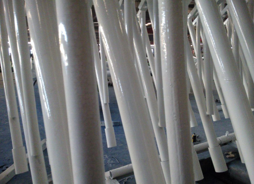 如果路燈桿本身沒有涉及到以上這些因素,但是噴塑之后依然有花紋,這基本就能肯定問題到底出在哪里了。噴塑烤箱的加熱結構是內部盤旋加熱的。也就是說鍋爐的排熱管經過烤箱旋轉幾圈之后再通往外邊。這種情況有一個弊端,那就是鍋爐通過鼓風機將熱量全部導入烤箱加熱管的同時,也將煤炭產生的濃煙一同卷進去了,只要內部盤旋的鋼管有一點縫隙烤箱里就會被濃煙籠罩。這就是導致燈桿泛黃的罪魁禍首。